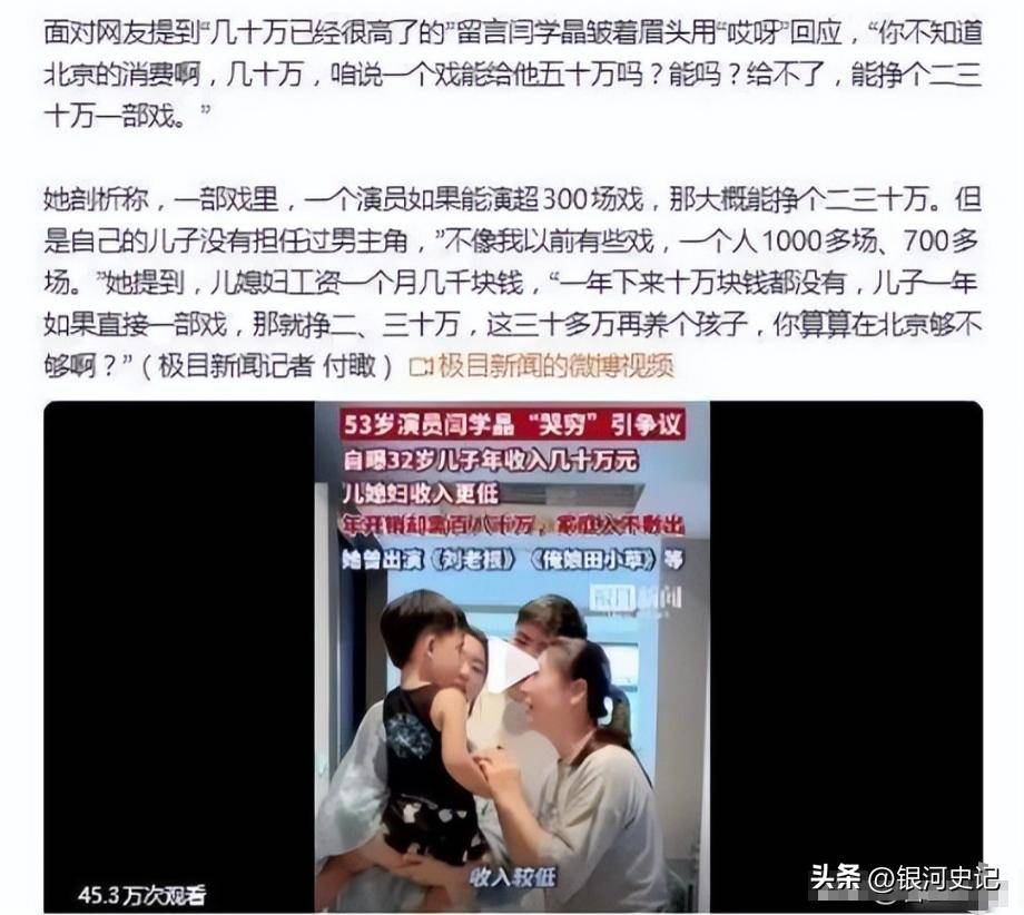 当网友指出几十万已经是普通人天花板时,她坚持认为“一个戏能给他五十万吗?能吗?给不了,能挣个二三十万一部戏”。